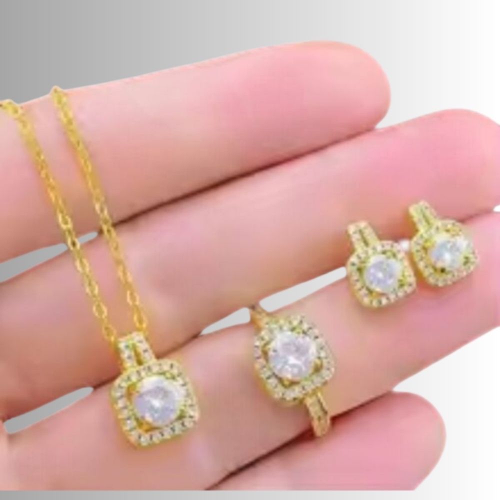 The Elegance Silver Jewelry Set brings sophistication and shine to every detail. Comprising a necklace, earrings, and ring, all in a classic design with encrusted stones, it instantly elevates any outfit. The refined finish provides a luxurious look without overdoing it. An ideal choice for special occasions or for those who want to emphasize elegance in everyday life.